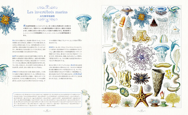 ラルース社ならではの豊富なアーカイブから、アドルフ・ミヨなど有名挿絵画家の美しい作品を厳選。約2700点以上のモチーフを美しく敷き詰め、10ジャンル・74項目にわたり、現代の解説を添えて紹介します。日本語版は、動植物、昆虫、藻類、菌類など4人の専門家の監修つき。様々な科学知識やフランスの文化も学べる博物学の入門書です。