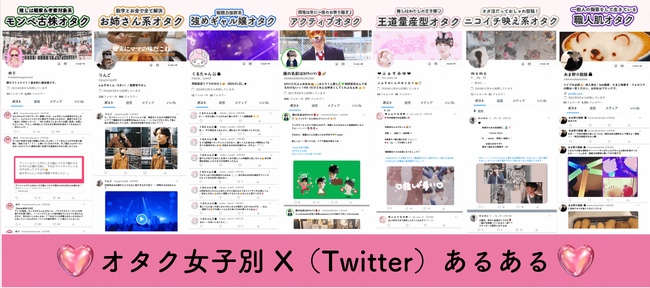 さらに、各オタク女子の「X(旧Twitter)あるある」も紹介しています。