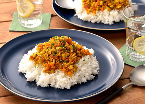 肉の代わりに豆腐を使ってさっぱり仕上げる、豆腐のブイヨンキーマカレー