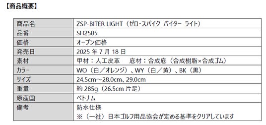 ~”最終ホールまで軽やかに”「ゼロ・スパイク バイター ライト」が履き心地をアップして新登場、また、キャディバッグ人気モデルからも連動カラー登場!~