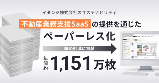 テクノロジーで不動産取引をなめらかにするイタンジ株式会社(以下「当社」)は、世界各地で地球環境問題を考える「アースデイ(地球の日)」(※1)に合わせ、当社の不動産業務支援SaaSの提供を通じたペーパーレス化により、2024年4月1日から2025年3月31日までの1年間で、約1,151万枚の紙の削減(※2)を達成したことをご報告します。