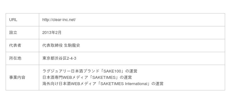 Clearは、『日本酒の可能性に挑戦し、未知の市場を切り拓く』をミッションに、日本酒に特化した事業を展開する2013年創業のベンチャー企業です。日本酒があらゆる世界の人の人生を豊かにしてくれることを知ってほしいという想いから、月間読者数約45万人にのぼる国内最大規模の日本酒専門WEBメディア「SAKETIMES」、世界160ヶ国で閲覧される「SAKETIMES International」の運営のほか、『100年誇れる1本を。』をテーマに掲げる高級日本酒ブランド「SAKE100(サケハンドレッド)」を展開しています。