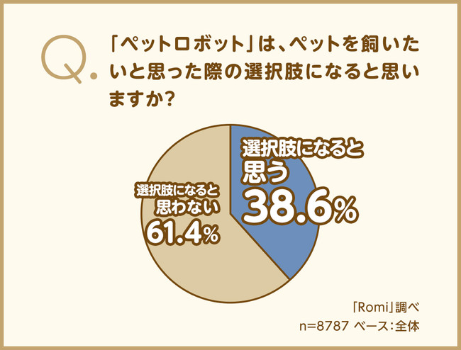 ・「ペットロボットがペットの選択肢に入る」約4割、ペットを飼いたいが飼えない人に絞ると半数超。