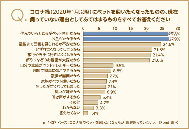 ・コロナ禍でペットを飼いたいと思った人は4人に1人。飼えない理由1位は「住んでいるところがペット禁止」。