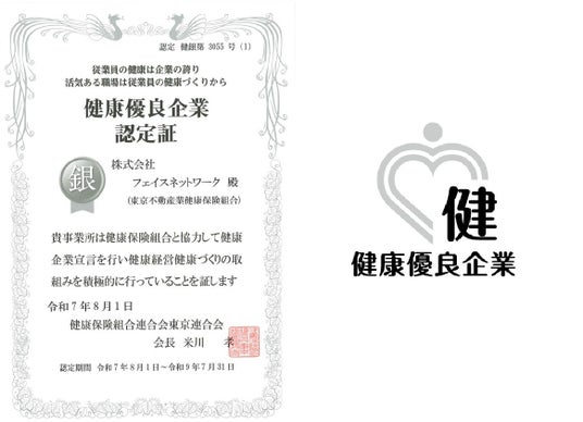 東京の城南3区エリア(世田谷区、目黒区、渋谷区)を中心に、主に新築一棟RCマンションによる不動産投資支援事業を展開する株式会社フェイスネットワーク(本社:東京都渋谷区、代表取締役社長:蜂谷 二郎、以下 「当社」という。)は、健康保険組合連合会東京連合会に「健康企業宣言」を行い、健康経営に向けた取り組みが評価され、2025年8月1日に「健康優良企業 銀の認定」を2年連続で取得したことをお知らせいたします。