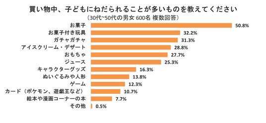 よくねだられるものは「お菓子」、ぐずられた時の切り札は「とにかく耐える」次いで「会話」と「お菓子」