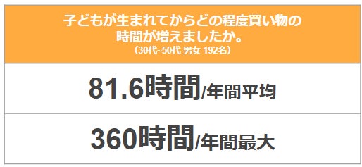 増加時間の平均は年間81.6時間、最大で360時間という回答もあった。このことからも、子育てにおける買い物の負担が大きいことがわかる。