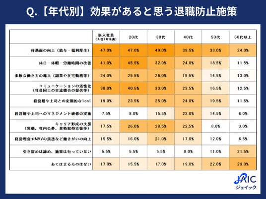 「年代別の退職状況と退職防止施策」を調査/ジェイック