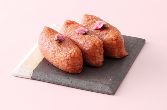桜色のかわいいおいなりさんです。見て食べて、桜をご堪能ください。
