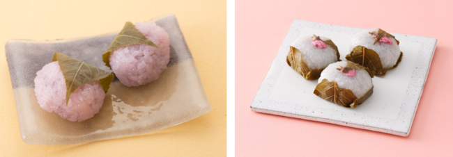 つぶあんを餅米で包み、桜の葉の塩漬けでくるみました。この時期限定の人気商品です。