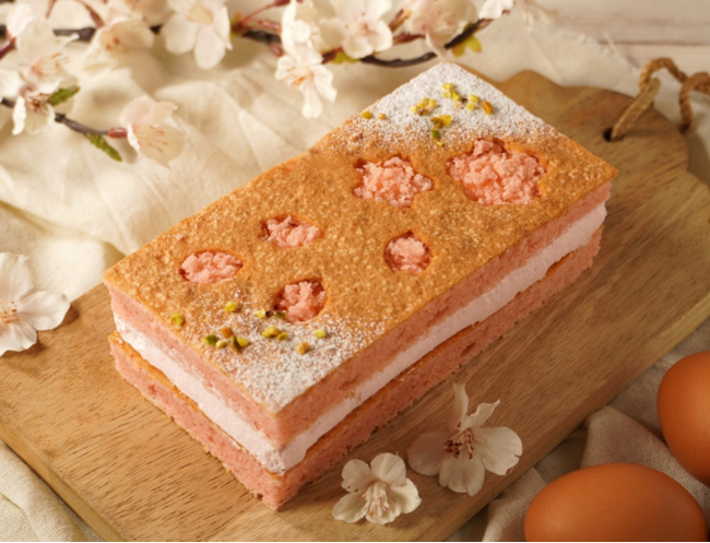 きめ細やかな桜味のスポンジと桜クリーム、そして濃厚なカスタード生地の味をお楽しみください。