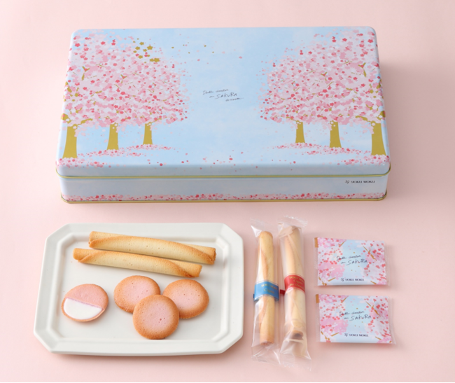 満開の桜を味わっていただきたいという想いを込めて、新たなデザイン缶にリニューアルしました。春の新たな門出を桜木道で送り出すようなイメージを表現しています。桜香るはらりと口溶けの良い食感で優しい色合いに焼き上げた桜風味のクッキーをお楽しみいただけます。