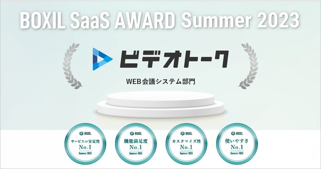 NTTコム オンライン・マーケティング・ソリューション株式会社(以下NTTコム オンライン)が提供するビデオ通話ツール「ビデオトーク」は、スマートキャンプ株式会社(以下スマートキャンプ)が主催する「BOXIL SaaS AWARD Summer 2023」のWEB会議システム部門で「サービスの安定性No.1」「機能満足度No.1」「カスタマイズ性No.1」「使いやすさNo.1」に選出されました。