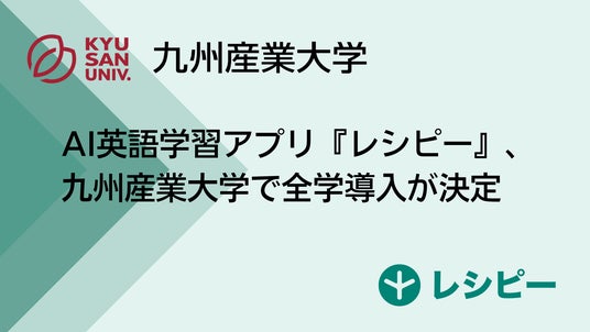 株式会社ポリグロッツ(本社:東京都新宿区、代表取締役:山口隼也)は、2026年4月より、九州産業大学(福岡県福岡市、学長:北島己佐吉)に対して、全学生および教職員を対象としたAI英語学習アプリ『レシピー』および、その教育機関向けサービス『レシピー for School』の提供を開始いたします。