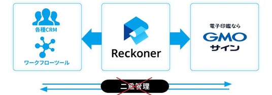 この度の連携により、「Reckoner」を用いて、「電子印鑑GMOサイン」と各種CRMやワークフローツールを自動連携することで、契約締結プロセスを効率化し、人的ミスやコスト削減を実現します。