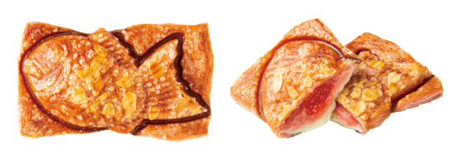 また、オリジナル生地には、いちご果肉を練り込み、表面(片面のみ)にはザラメ糖とアーモンドスライスをトッピングして、“サクッ” と香ばしく焼き上げました。