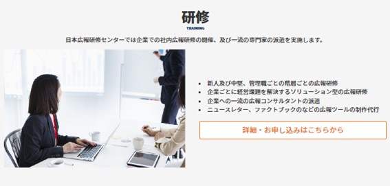 日本広報教育センターは知識付与だけでなく結果の出せる広報パーソンの育成にこだわった広報パーソン育成の専門機関です。新任向け「新任広報育成講座 速習コース」をはじめ広報専門eラーニング講座を多く展開しております。