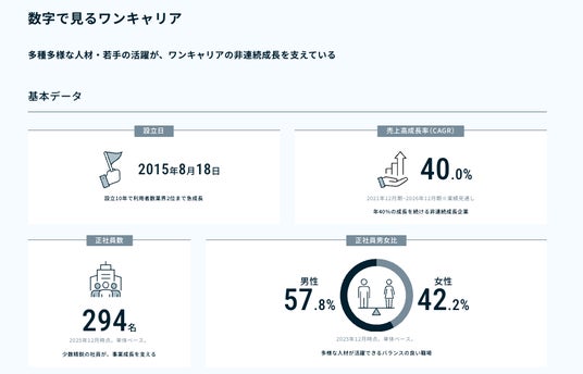キャリアデータプラットフォーム事業を展開する株式会社ワンキャリア(本社:東京都渋谷区、代表取締役社長:宮下 尚之、以下「ワンキャリア」)は、本日採用サイトを開設・公開したことをお知らせいたします。