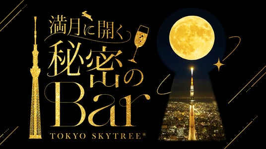 東京スカイツリーでは、夜の展望台で月と夜景を眺めながらよりスペシャルなひと時をお過ごしいただけるバーイベント「満月に開く 秘密のBar」を初めて開催します。