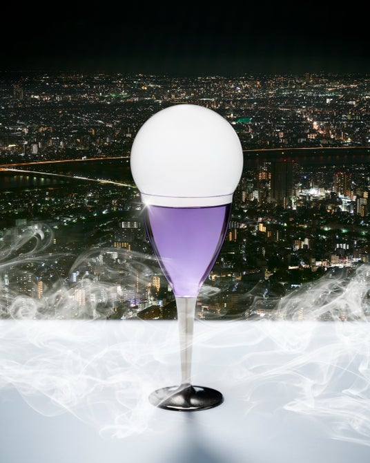 スカイツリーのライティング「雅」をイメージしたバイオレットのカクテル。シャボンを割るとラグジュアリーなミックスベリーの香りが広がります。