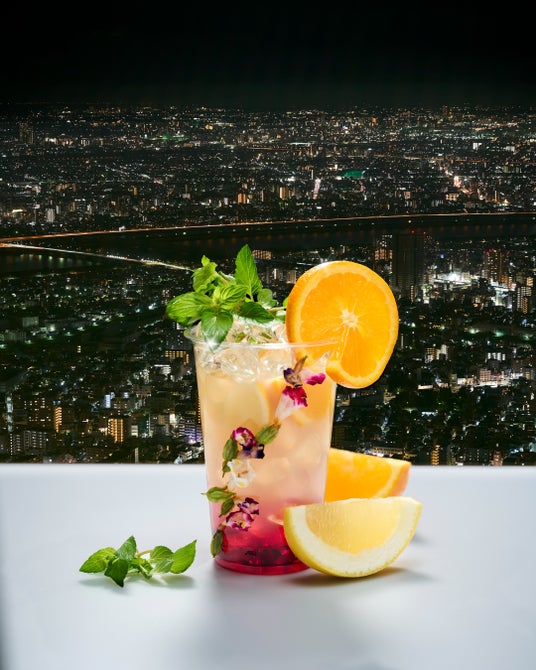グレープフルーツとブラッドオレンジの苦みがアクセント。スカイツリーのライティング「幟」をイメージした華やかなノンアルコールカクテルです。