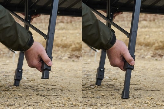 水平にテーブルを保てない場合でも、脚部分の高さ調節ボタンで無段階に調整できるため、地面がフラットでなくても問題ありません。