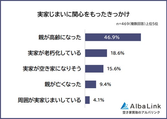 株式会社AlbaLink(本社:東京都江東区、代表取締役:河田 憲二)は、実家じまいに関心がある469人を対象に「実家じまいの話し合いに関する意識調査」を実施し、そのデータをランキングにしました。