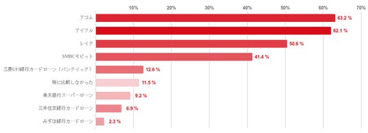 プロミスと同じ大手の消費者金融を比較対象としている人が多かった。