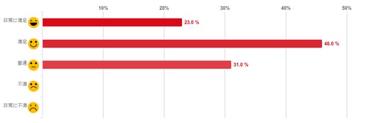 プロミスの即日融資の満足度評価では、「非常に満足」「満足」との評価が合計で8割近く集まった。