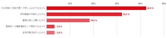 多くのユーザーはプロミスがWeb完結で申し込める点や即日融資が可能な点にメリットを感じており、プロミスの金利条件が良いと答えた人は3.4%に留まった。