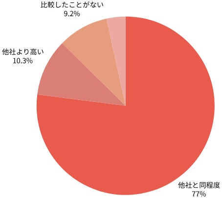 他社比較では、プロミスの金利を「他社と同程度」と評価する人が77%となった。