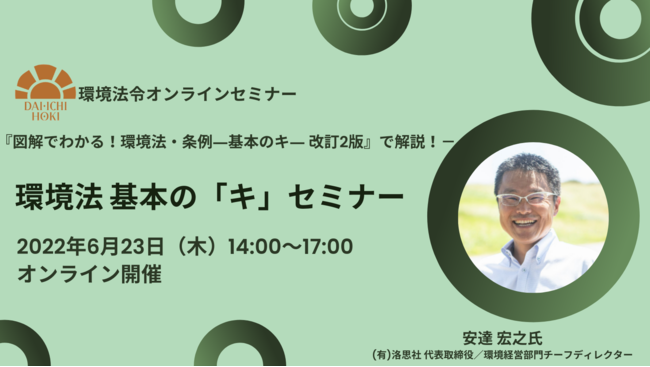 法律関連出版物、各種データベースを提供する第一法規株式会社(所在地:東京都港区、代表取締役社長:田中 英弥)は、『環境法 基本の「キ」セミナー』を、2022年6月23日にオンライン開催します。
