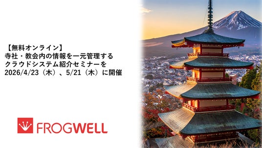 フロッグウェル株式会社は、宗教法人のIT担当者の方々を対象に、寺社・教会内の情報を一元管理するクラウドシステム紹介セミナーを2026年4月23日(木)、5月21日(木)に開催いたします。