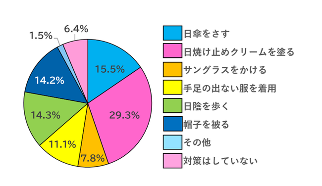 紫外線対策で一番多いのは「日焼け止めクリームを塗る」と回答