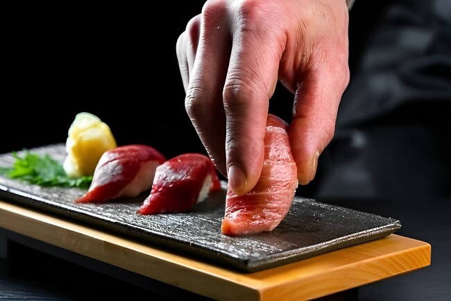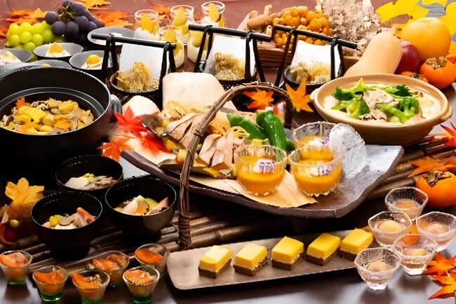 ステージキッチンでは、料理人が目の前で握る寿司、秩父味噌豚焼き、天ぷらなどをライブで提供しています。秋前半のメイン素材には「本マグロ」と「松茸」が登場!本マグロは握り寿司やお造り、漬けマグロ丼で、松茸は炊き込みご飯などのきのこ料理でご用意します。一品ごとにテーマのある個盛のお料理も評判。また、味だけでなく見た目にもこだわったデザートの数々も自慢の逸品です。
