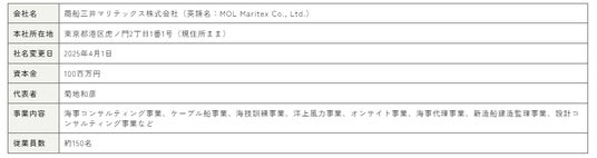 商船三井グループのMOLマリン&エンジニアリング株式会社(社長:菊地和彦、本社:東京都港区)、商船三井オーシャンエキスパート株式会社(社長:瀧口慎吾、本社:東京都港区)および、株式会社MOLシップテック(社長:穴田祐二、本社:東京都港区)の3社は、合併新会社(註1)の社名を「商船三井マリテックス株式会社」に決定しました。