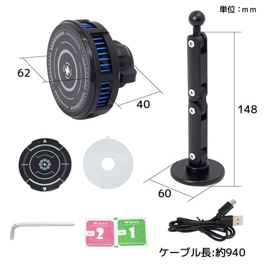 ・セット内容/本体、USB TypeCケーブル、アーム、六角レンチ、交換用ジェルシート、スマホ用プレート、掃除シート(1+2)、日本語取扱説明書
