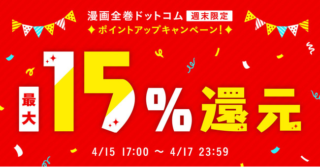 株式会社TORICO(本社:東京都千代田区、代表取締役社長:安藤拓郎)が運営するECサイト「漫画全巻ドットコム」にて、ポイントアップキャンペーンを2022年4月17日(日) 23:59まで週末限定で開催致します。