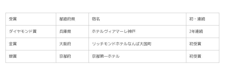 ■楽天トラベルアワード 各賞(ダイヤモンド・金・銀)