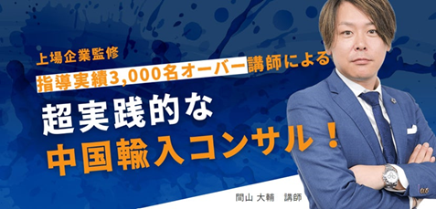 当社では今年3月より、中国輸入ビジネス専門のオンラインサロンやスクールを開講いたしました。インターネット物販コンサルタントであり、中国輸入ビジネスの第一人者である間山 大輔氏が登壇し、中国輸入ビジネスを丁寧に解説します。