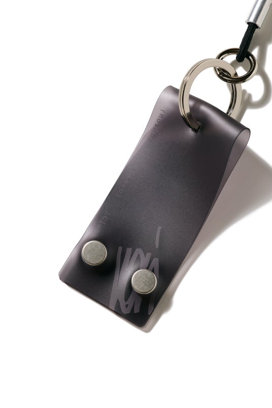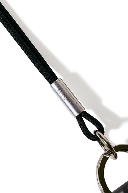 ストラップには伸縮性を備えたラバー素材を採用し、首に掛けたままでもフレキシブルにご使用いただける設計のキーホルダー。
