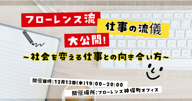 認定NPO法人フローレンス(東京都千代田区、代表理事:赤坂緑)は、2023年12月13日(水)、こども・子育て領域の社会課題を解決する仕事に興味関心のある方向けのミートアップイベントを開催いたします。フローレンスで働く人がどんな想いで仕事と向き合い、取り組んでいるのか、フローレンス流「仕事の流儀」をご紹介いたします。
