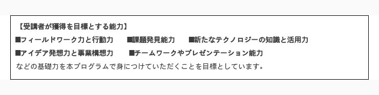 本プログラムでは、東北6県を中心に、テクノロジーに明るく、地域課題を真正面から捉え、新たな価値を生み出し、それを地域資源として活用でき、そして行動する人材を養成します。