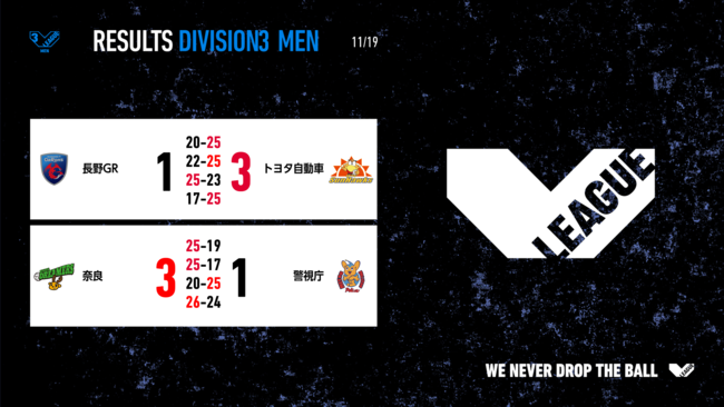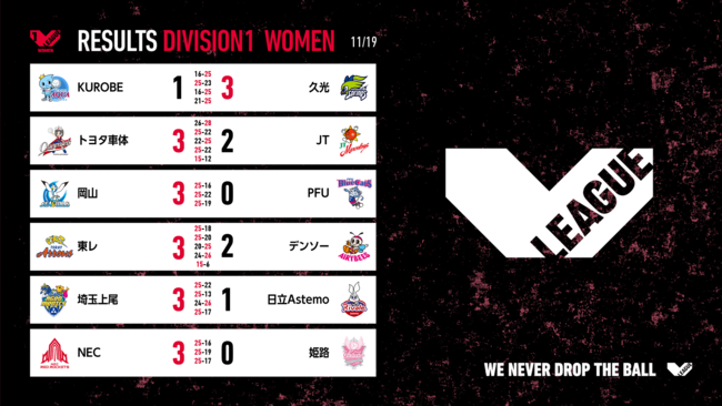バレーボール国内最高峰リーグ V.LEAGUE【11月19日の試合結果】