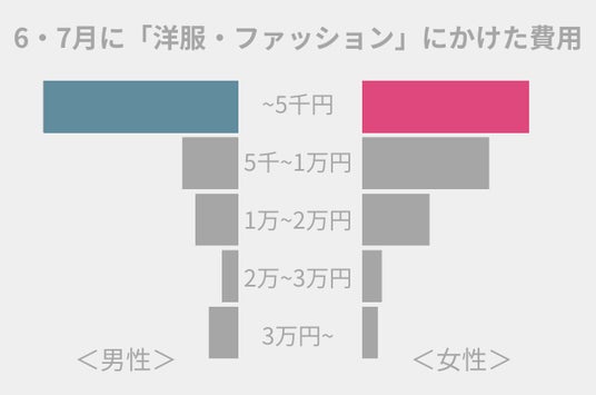 また、6・7月に『洋服・ファッション』にかけた費用について、男女ともに、「5000円未満」と回答した方が多かったです。