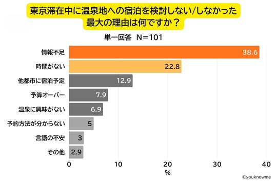 株式会社TSTエンタテイメント(東京都新宿区、代表取締役社長:都甲義教)が運営する訪日外国人観光客の“リアルな声”を対話形式で引き出すインバウンド調査サービス『youknowme(読み:ユノミ)』は、箱根DMO(一般財団法人箱根町観光協会)(神奈川県足柄下郡箱根町、理事長:勝俣伸)と共同で、訪日外国人観光客約100名を対象に、東急歌舞伎町タワー(東京都新宿区)にてアンケートを実施し、「訪日外国人観光客の温泉・旅館利用に関する意識調査」を行いました。