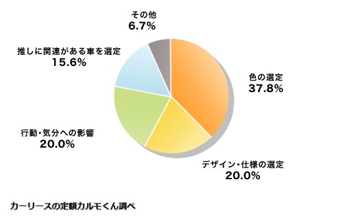 最も影響するのは「色の選定」で37.8%。「推し」が出るCMの車を候補にした方も