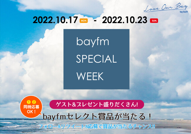 対象のSNSをフォロー&応募でbayfmセレクト商品が当たるチャンス!さらに、期間中各番組ゲスト、プレゼントなどスペシャル企画も盛りだくさん!!