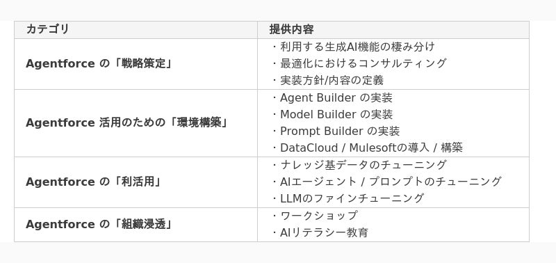 ~ Agentforce に特化した支援を提供し、Salesforce と連携した実務的な生成AI利活用を包括支援~