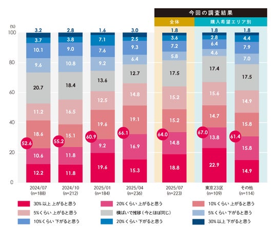☑ 「10年後も住宅価格は上がる」と考える人が64.0%に達し、将来の資産価値への期待感が強まっている